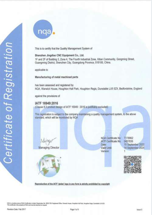 公司于2022年9月通過:IATF16949:2016 NQA 汽車認(rèn)證質(zhì)量管理體系